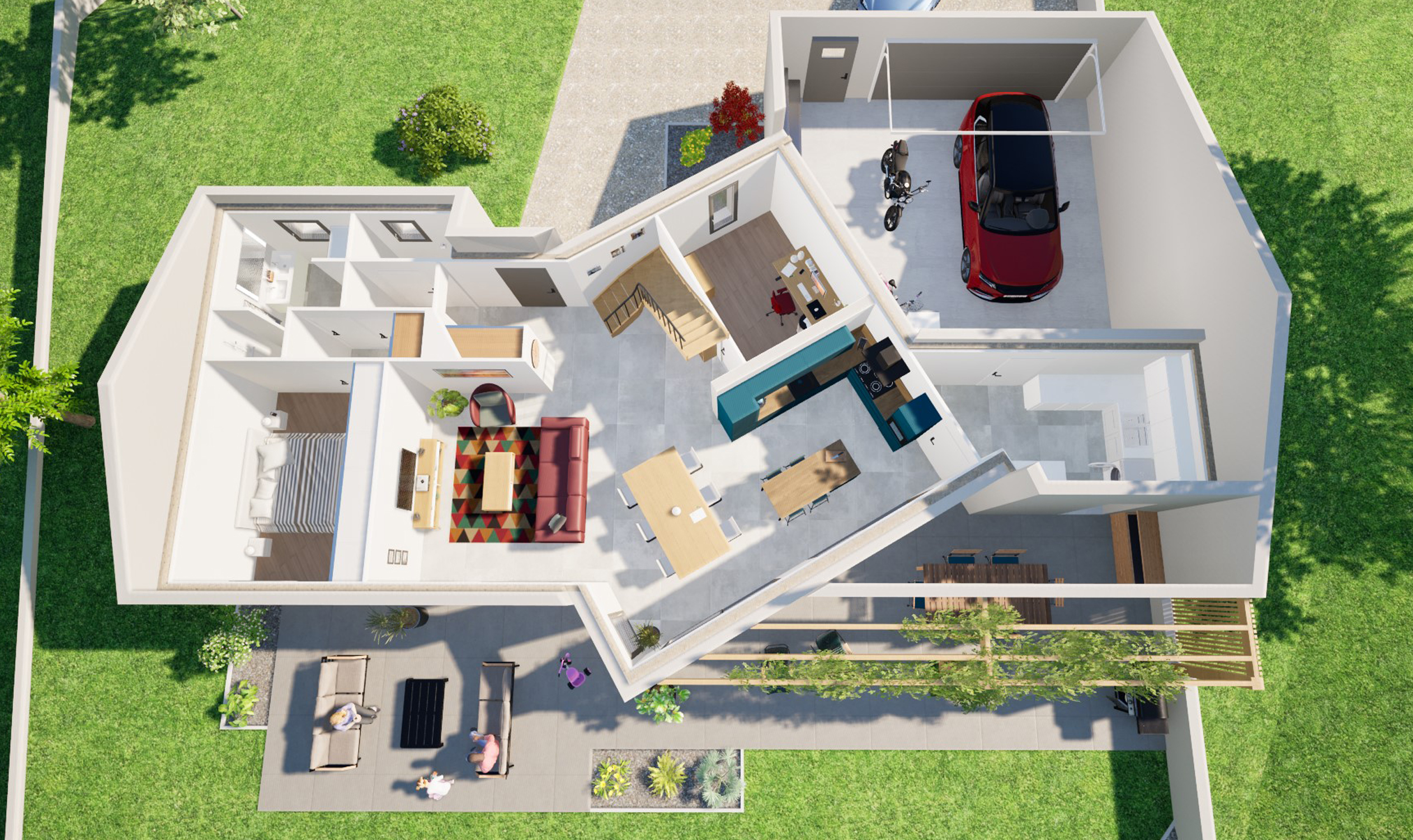 Maison traditionnelle avec 1 chambre, un bureau au rez-de-chaussée et 3 chambres à l’étage.