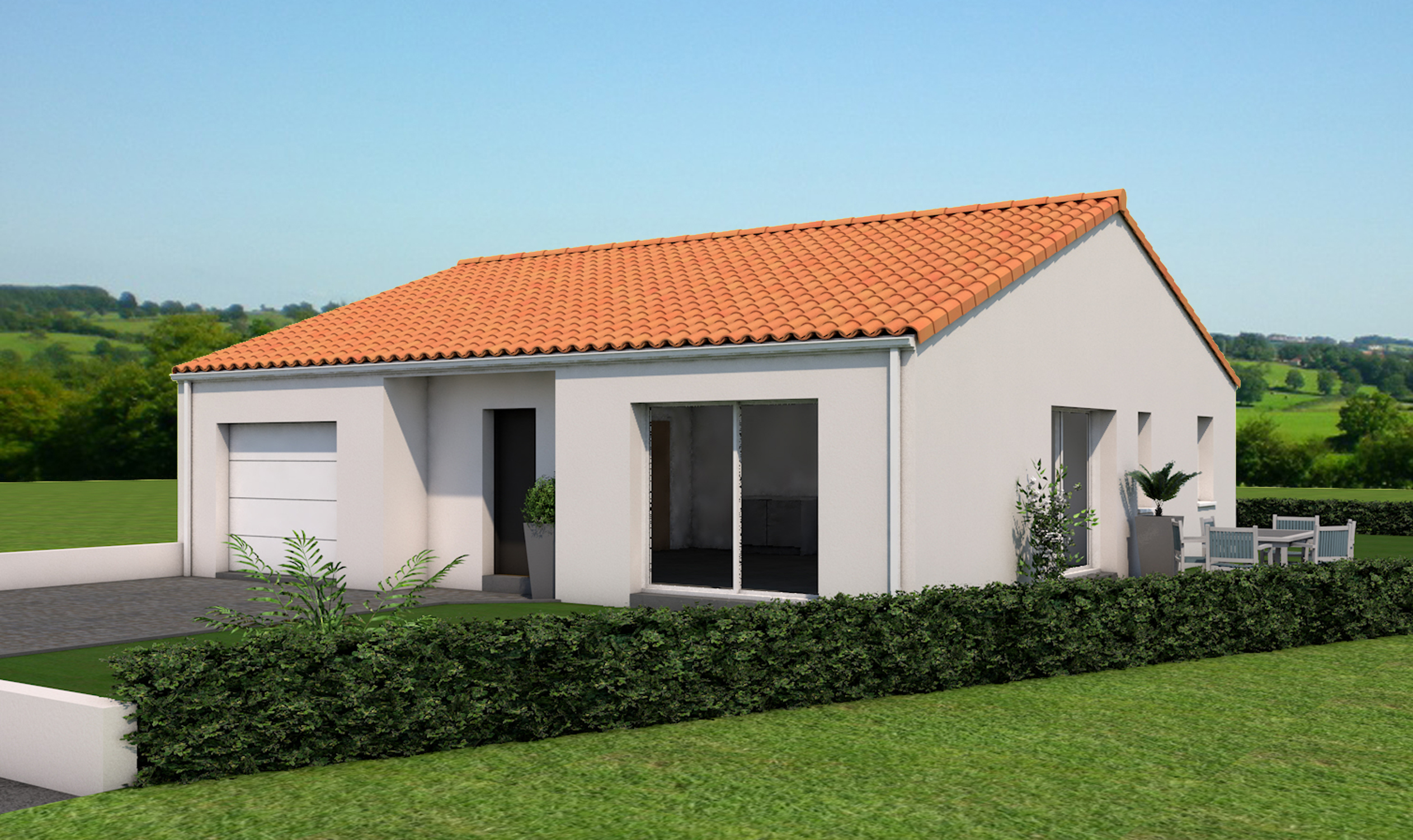 Ce modèle plain-pied vous propose 2 chambres. Vous pourrez profiter d’un garage spacieux fonctionnel.