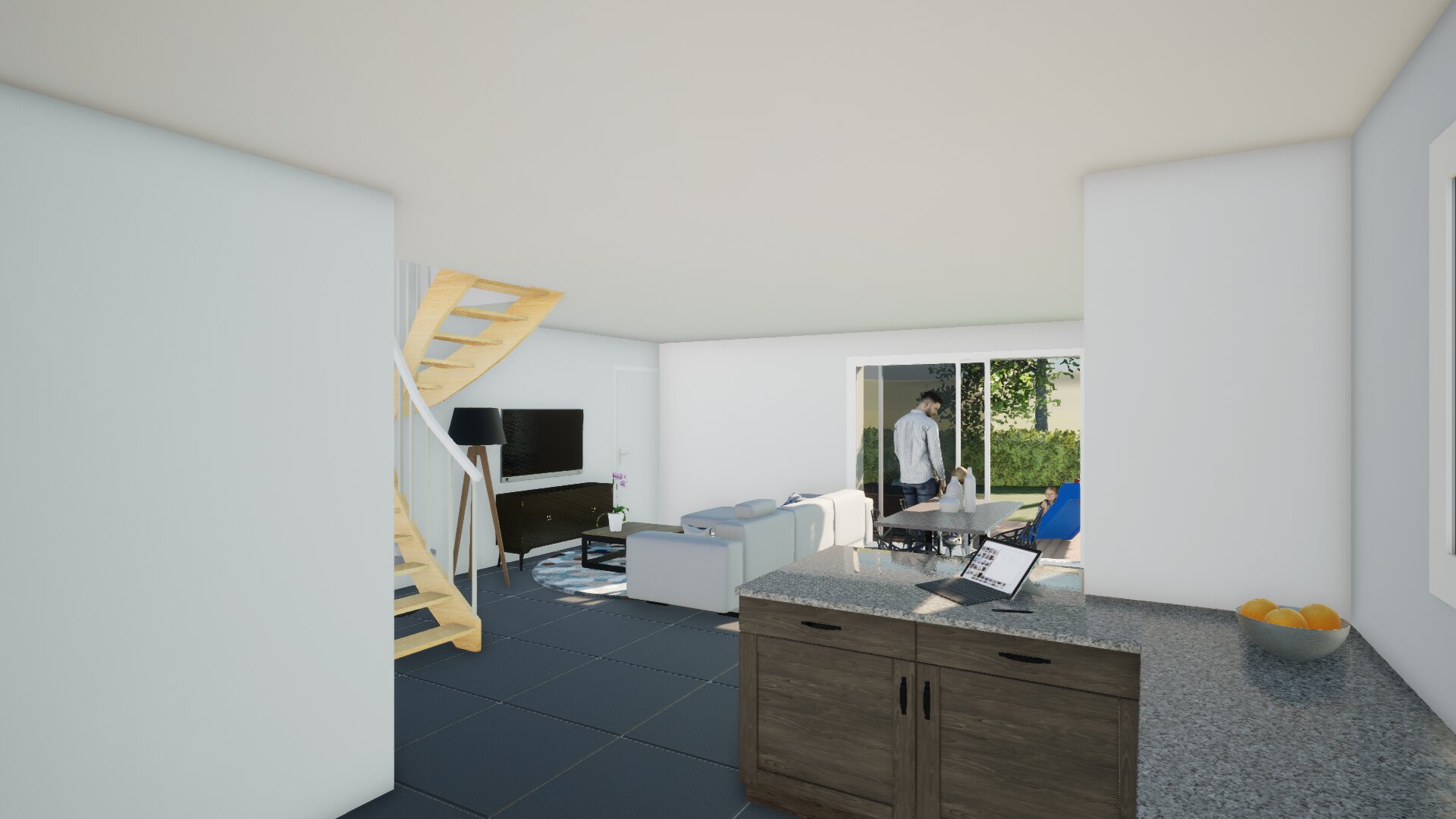 – Une pièce de vie de traversante